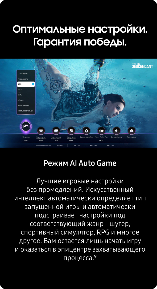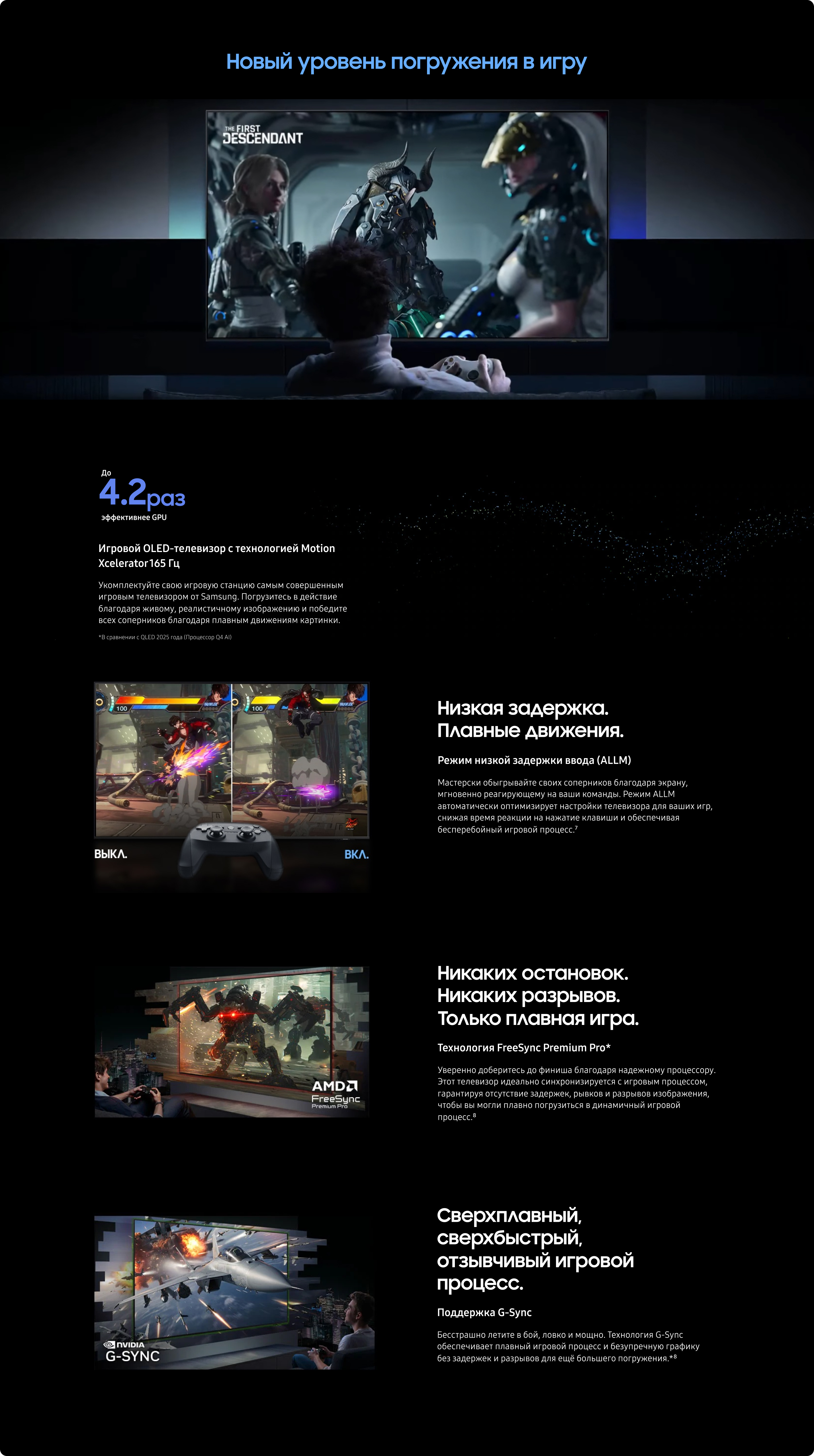 9.Технология Motion Xcelerator 240 Гц: Разрешение 4K при 240 Гц доступно только в играх на ПК, поддерживающих такие характеристики (требуется видеокарта соответствующего уровня). Производительность может отличаться.